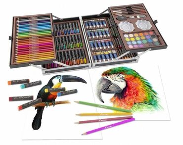 Kompletan set za crtanje i slikanje u čvrstom aluminijumskom koferu sa ručkom. Idealno za školarce, hobiste i umetnike koji žele sve materijale na jednom mestu.