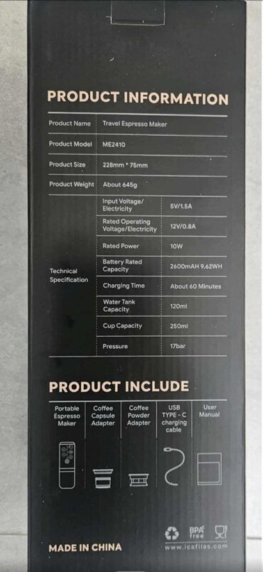 Napomena: slike prikazuju crnu i belu varijantu uređaja i način upotrebe sa kapsulama i mlevenom kafom. Proizvedeno u Kini.