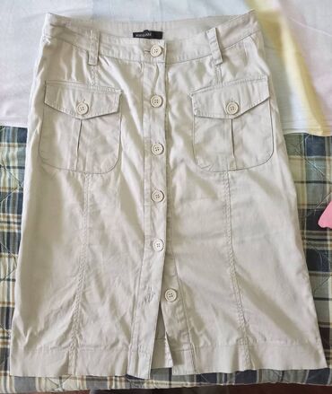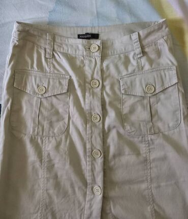 MidiSafari suknja do kolena, S/M , pamuk sa malo elastina, bež/sive boje, lepa i uklopiva u sve kombinacije.