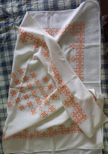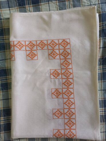 StolnjakNovi stolnjak 170×120cm. Boja bledokrem ili bledobež sa narandžastim vezom. Fantastičan. Ja imam okrugli sto, pa ovaj stolnjak je neupotrebljen.