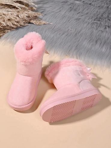 Preslatke čizmice sa krznom i satenskom mašnom, dostupne u nežno roze i klasičnoj camel boji.