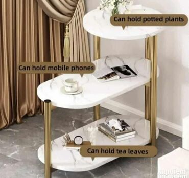 - Funkcionalnost: tri nivoa za odlaganje – idealno za saksije sa biljkama, lampe, knjige, časopise, šolje, telefone i dekoraciju