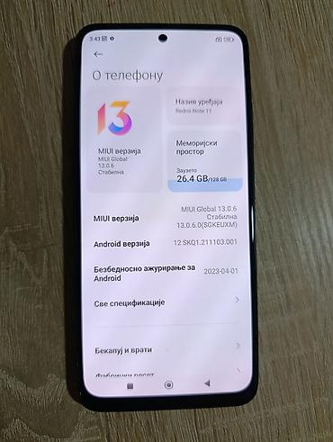 - Софтвер: MIUI Global 13.0.6 (SGKEUXM) на Android 12; безбедносно ажурирање 2023‑04‑01