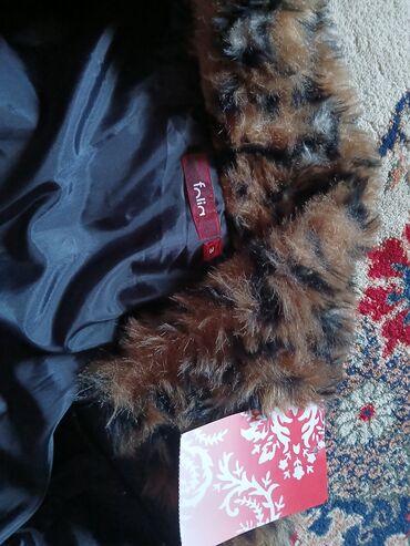 Ženski kaput sa krznom – Terranova, veličina M - Dugačak bež kaput od mekane tkanine sa izgledom brušene kože - Bogata krznena aplikacija u više tonova (bela/siva/braon) duž okovratnika, ivica pre...