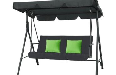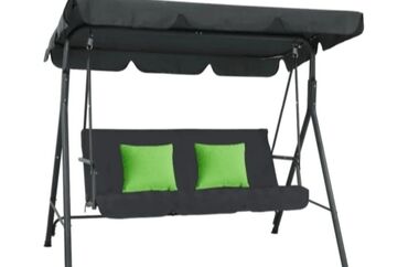 Ljuljaska je napravljena od celicnih cevi i ide u kompletu sa jastucima za sedenje.