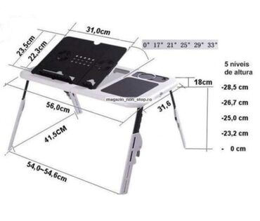 Odgovara svim vrstama laptopa i notebook računara. Ima podesive nožice i podesivi ugao nagiba.