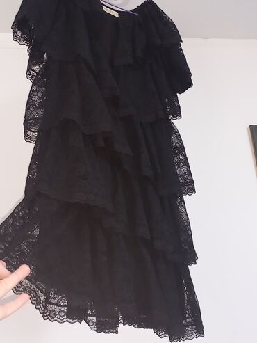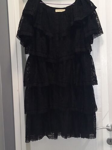 Cipkana haljina vel.L. Kao nova obucena samo dva puta bez ostecenja. Boja je jaka crna ali zbog blica izgleda ovako na slikama. Prelepa