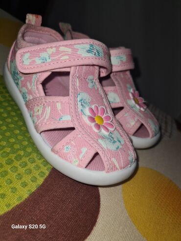 Dečije patofne/sandale Pollino, veličina 22. - Brend: Pollino - Veličina: 22 (naznačeno na đonu) - Spoljna dužina: 16 cm - Unutrašnja dužina: 14 cm - Boja i dezen: roze/lila sa šarenim detaljima; ...