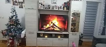 Priložene fotografije prikazuju raspored elemenata i realan izgled u ambijentu. Idealno rešenje za dnevnu sobu koje spaja funkcionalnost, prostor za odlaganje i istaknutu poziciju TV-a.