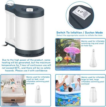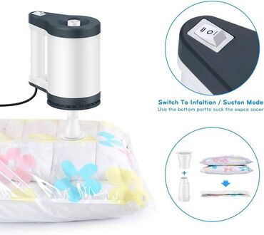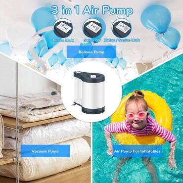 Potpuno NOVA elektricna pumpa za balone i duseke, koja ce vam omogciti da brzo i lako naduvate veliki broj balona. Pumpa radi u 2 smera, tako da uz pomoc nje mozete i ispumpavati duseke i balone, kao i izvuci vazduh iz vakum kesa za garderobu, jastuke, cebad. . .