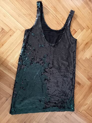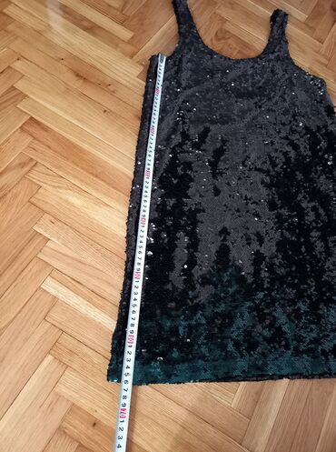 LHaljina sa diskovima, pisi brisi. Vel.L. jednom obucena. Duzina sa bretelama 87cm