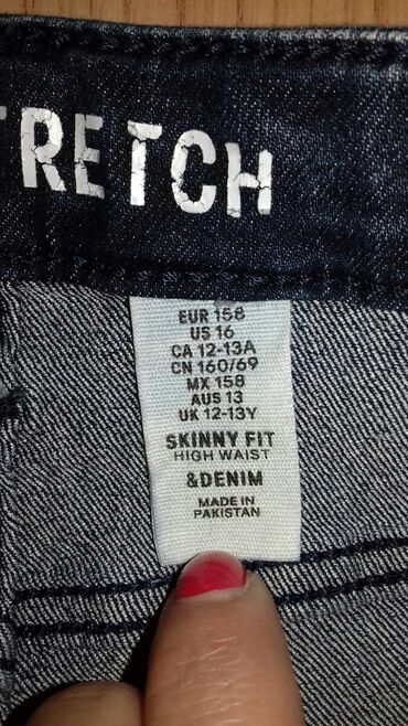 Dečije farmerke – jogger modeli - Model: Cuff Jogger - Veličina: 12–13 godina, visina 158 cm (etiketa vidljiva na fotografiji) - Materijal: mekani denim sa dodatkom elastina (prijatan i rastegljiv...