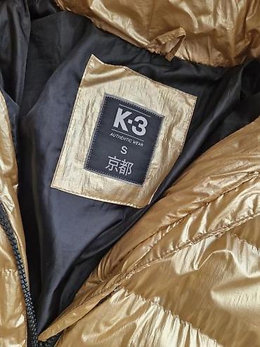 K-3 Zimska jakna, perjana, topla, duga, zlatne boje, S vel , ali odgovara i M, u odlicnom stanju sto se iz slika moze videti