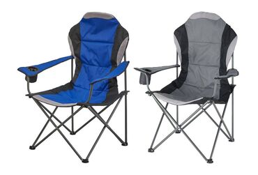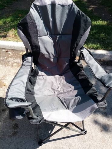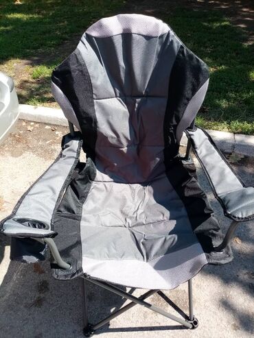 Potpuno nova, sklopiva stolica, idealna za kampere, ili ribolovce, tezine 3 kg. Stolica je napravljena od metala i poliestera, poseduje drzac za case, kao i torbu za odlaganje i nosenje. Dimenzije su sledece: