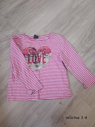 - Pamučna majica dugih rukava u jednobojnoj, svetloj (beloj) nijansi, klasičan kroj i okrugli izrez. Višenamenska kao osnovni sloj garderobe. Oznaka brenda: La Cina. Veličina: 8.