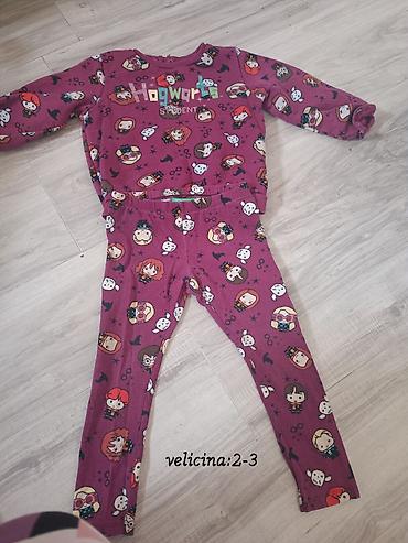- Dvodelna trenerka/p sa motivima čarobnjačkog sveta (Hogwarts Student): gornji deo dugih rukava i donji deo – helanke sa istim printom po celoj površini. Mekan, rastegljiv materijal prijatan za kožu. Veličina: 2–3.