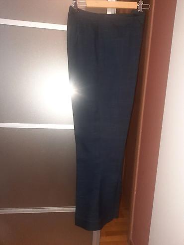 Ženski komplet – sako i pantalone - Kroj: klasičan sako sa reverima, jednim dugmetom i džepnim preklopima; ravne pantalone do članka sa podvrnutim porubom. - Detalji: diskretna metalna broš-iglica...
