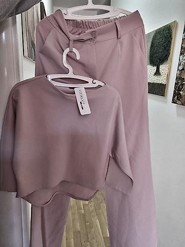 Predivan komplet puder roze boje, pantalone imaju gumu pozadi tako da su rastegljive u struku, odgovaraju M/L vel struk 38 + duzina pantalona 110 cm gornji deo mus rukavi duzina 50 cm