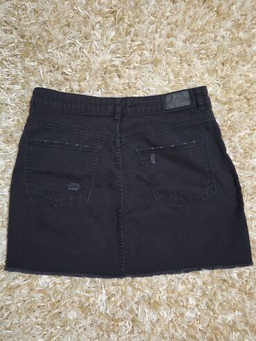 Siva teksas mini suknja sa „distressed” efektom. - Materijal: klasični denim (pamučni teksas) u ispranoj sivoj boji - Kroj: ravna mini dužina, visina struka srednja - Detalji: pohabani i iscepani ...