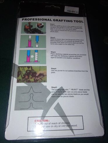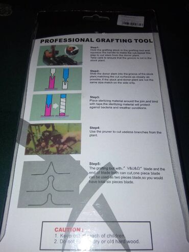 Profesionalne makaze za kalemljenje, sa 3 vrste noza, "u", "v" i "omega", koji su zaostreni sa obe strane, tako da, kada se istupi jedna, moze se okrenuti nozic i onda se koristi druga strana, tako da se mogu godinama koristiti. Napravljene su od kvalitetnog celika, pa se mogu i ostriti po potrebi.