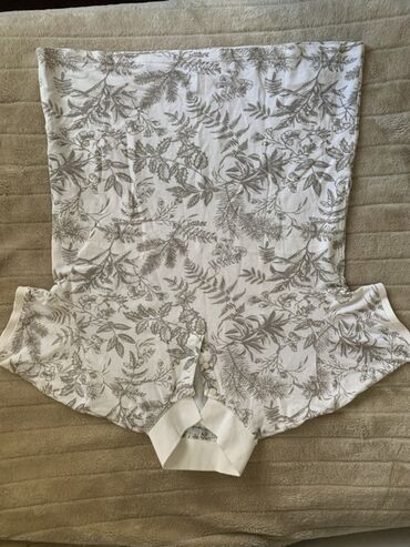 2) Bela sa svetlosivim botaničkim/floralnim printom po celoj površini; bela kragna i patenta