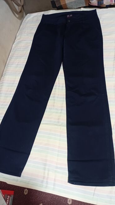- 1 par tamnoplavi chinos/pamuk pantalona bez izbleđivanja, ravan kroj, diskretan dizajn, prednji i zadnji džepovi, kopčanje na dugme i rajsferšlus, belt petlje.