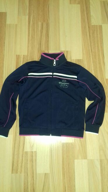 Champion dukserica za devojcice veličina Large (YRS 11/12, visina 150–155 cm). - Model: klasičan crewneck sa dugim rukavima - Boja: crna sa svetlosivim panelom napred - Dizajn: veliki kontrastni p...