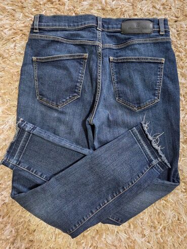 - Kroj: slim/straight nogavice sa lagano skraćenim i sirovim (neporubljenim) rubom za moderniji look