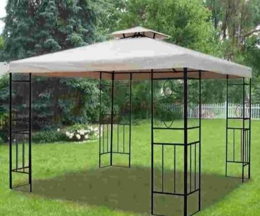 Metalna gazebo tenda – Modena - Konstrukcija: čvrst metalni ram sa dekorativnim panelima na stubovima - Krov: dvostruki vrh za bolju ventilaciju; bež platno koje pruža zaštitu od sunca - Dizajn: č...