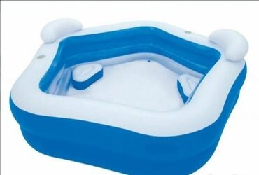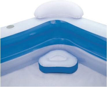 Petougaonog oblika, porodični bazen za dvorište bestway family fun ima dva mesta za sedenje ("stolice" koje se takođe naduvavaju) sa naslonom za glavu