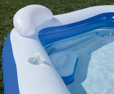 Pored mesta za sedenje, porodični bazen bestway family fun ima otvore za odlaganje čaša sa pićem.