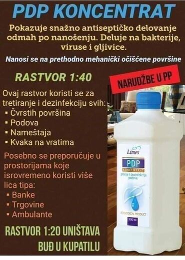 Pdp koncentrat otklanja buđ I vlagu,dezinfikuje podove.