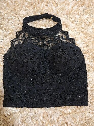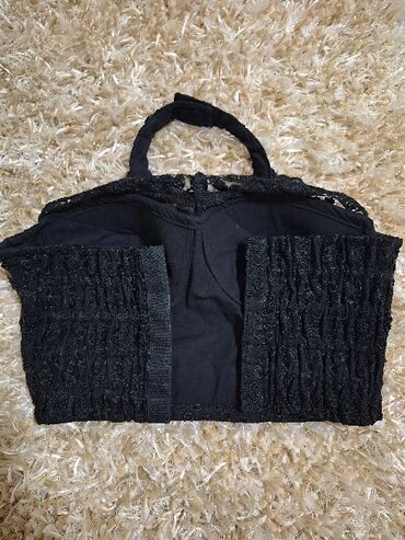 Korset šljokice S/M Elegantni crni korset sa šljokicama. - Veličina: S/M - Dizajn: crna čipka sa srebrnim šljokicama raspoređenim u geometrijski V motiv; ukrašene korpe za dodatni sjaj - Model: ...