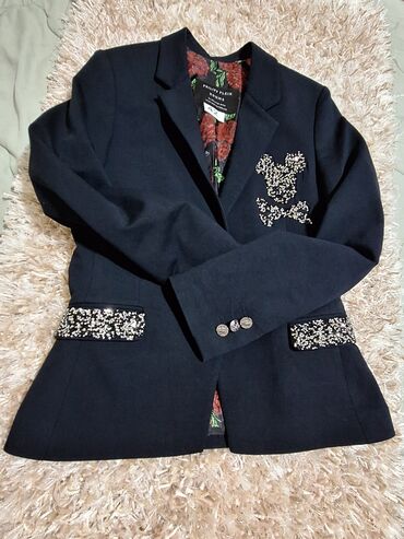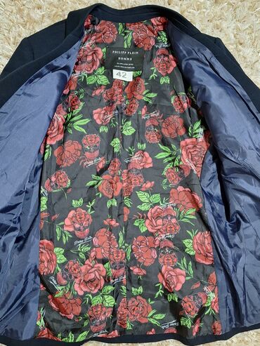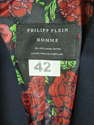 Sako u tamnoplavoj/ crnoj nijansi, sa upečatljivim detaljima i printom inspirisanim brendom Philipp Plein (etiketa i postava sa ružama i lobanjama). Nije original – kupljen u Moskvi,nikada nije obucen.