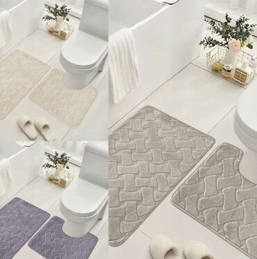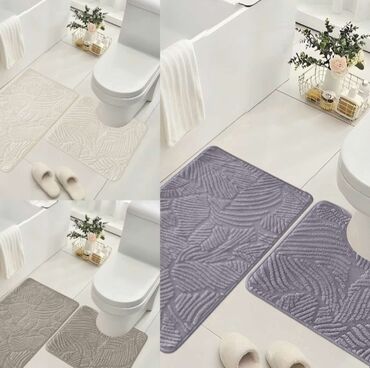 Set prostirki za kupatilo – 3 u 1 (Bloomy) - Sastav kompleta: prostirka za pod pored kade/tuša, u-izrezana prostirka za bazu WC šolje i navlaka/prostirka za poklopac WC šolje. - Materijal: mekana ...
