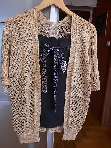 Zlatna mini suknja sa šljokicama. Nova sa etiketom. M vel. - Kroj: uska mini suknja, visoki struk - Materijal: spolja sloj gusto ušivenih šljokica koje stvaraju sjajan, teksturisan efekat; unutra...