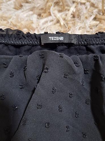Tezenis bodi – crni, elegantan model sa spuštenim ramenima i volanom. Gornji deo i rukavi od lagane providne tkanine sa baršunastim tačkicama (švajcarska tačka), tričetvrt rukavi blago zvonasti. Donji deo od elastičnog materijala, prijanja uz telo.
