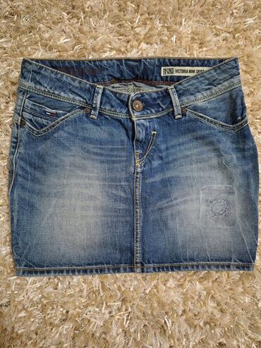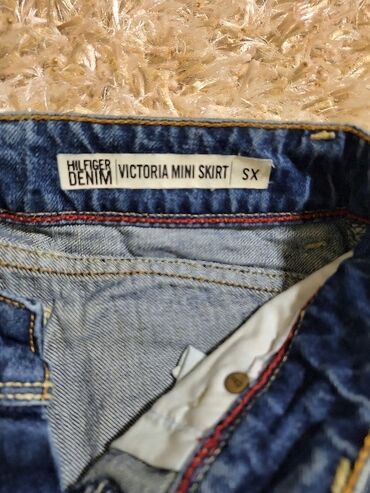 TOMMY HILFIGER teksas mini suknja, original. 📌Nosena,ali izuzetno ocuvana. 📌Naznacena velicina je XS,po dimenzijama neki S,slabiji M. 📏 Duzina napred 32cm,pozadi 39cm.Poluobim je 39cm.