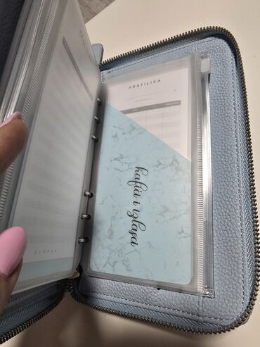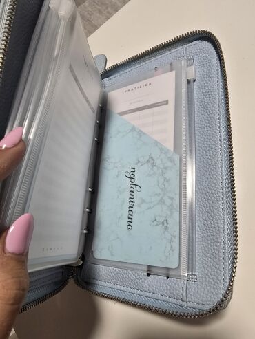 Idealan za keš-budžetiranje, raspoređivanje troškova i uredno čuvanje kartica, novca i računa u jednom kompaktu. Dimenzije približno A6 planera; lako staje u torbu. Svetloplava boja i minimalistički dizajn.