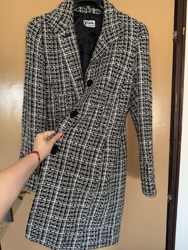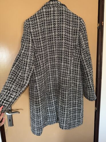 Kaput sa dugim rukavima i kariranim dezenom u crno-beloj boji. Karakteriše ga klasičan kroj sa reverima i dugmadima, pružajući elegantan izgled. Postava u unutrašnjosti obezbeđuje dodatnu udobnost, čineći ga pogodnim za prelazni period i hladnije dane. Idealan je za različite prilike, od svakodnevnih aktivnosti do formalnijih događaja. Velicina za L