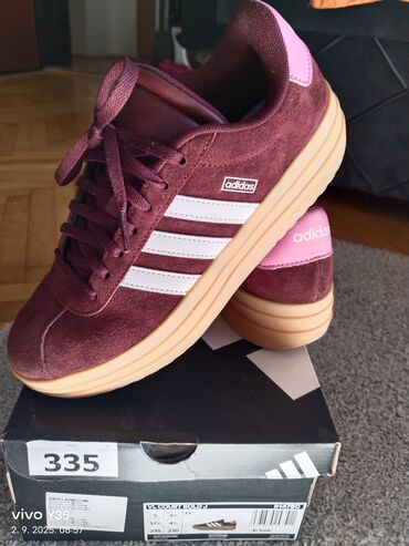 UpotrebljenоAdidas Vl Court Bold u broju 37 i 1/3.Unutrasnje haziste 23 cm.Patike su obuvene dva puta do kancelarije(autom).Promasena je veličina. Stanje kao nove sto se moze videti na slikama.