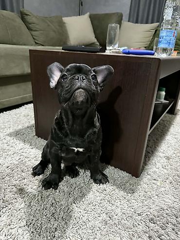 Francuski buldog, crne boje sa malom belom tačkicom na grudima.Lepe konstitucije, široke glave i krupnih ušiju, tipičan kompaktan izgled rase. Kratka i sjajna dlaka, lako održavanje. Prijateljskog temperamenta, privržen ljudima, naviknut na stan i kućna pravila; radoznal i razigran, ali miran u kući. Pogodan za porodice, početnike i život u manjem prostoru.