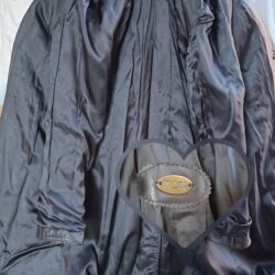 - Pojas: kožni kaiš u istom materijalu, provučen kroz paspulirane držače; može da se veže napred ili pozadi