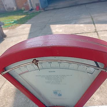 Dimenzije približno prema fotografijama; masivna konstrukcija obezbeđuje stabilnost pri merenju do 20 kg. Skala i oznake su čitljive, mehanizam ručni bez električnog napajanja.