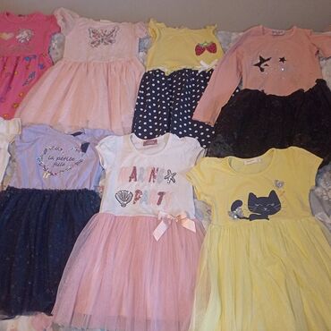 Paket odece za devojcicu sadrzi: 1 bundica 92-98 1 jakna 116 1 trenerka komplet 6 broj 1 teget tunika 110 1 duks 128 (manji kalup) 1 ljubicasta tunika 116 1 termo pantalone br 4 Addidas patike 27 b...1 500 RSD
