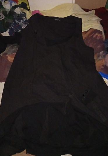 - Crna haljina bez rukava, jednostavnog A kroja. Diskretni detalji sa dugmadima sa strane, duža zadnja strana (blagi high‑low efekat).