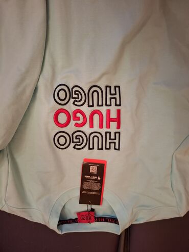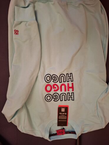 - Detalji: elastične ranfle na rukavima i struku; izvezeni/brendirani HUGO logotipi na prednjoj strani u više ponavljanja (crna i crvena), diskretan HUGO natpis i na manžetni rukava; unutrašnja traka sa HUGO printom duž okovratnika