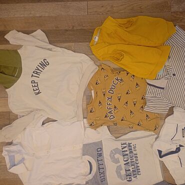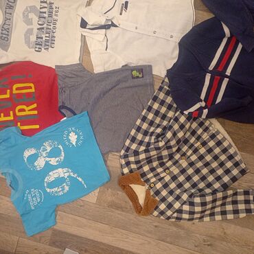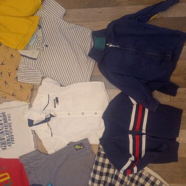 Različite boje i stilovi: od sportskih majica do elegantnih košulja i toplih džempera/jakni. Praktičan komplet za prelazne sezone i svakodnevne kombinacije.
