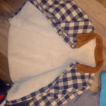 - 1 košulja-jakna (štepana) na krupne teget-bele kocke, topla postava i braon somotska kragna