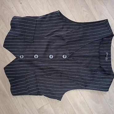 Prsluk, veličina L, u super stanju. - Model: duži, bez rukava, V-izrez - Zakopčavanje: pet dugmića napred - Kroj: blago strukiran sa dekorativnim šavovima, prorezi sa strane pri dnu za udobnije kr...